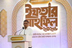 Bangladesh Jamaat-e-Islami organized an Iftar party today at the Bangladesh China Friendship Conference Center in Dhaka, bringing together political leaders, dignitaries, and prominent figures from across the country. The event began at 5:20 pm under the chairmanship of Dr. Shafiqur Rahman, Honorable Ameer of Bangladesh Jamaat-e-Islami and Leader of the Opposition in the National Parliament.